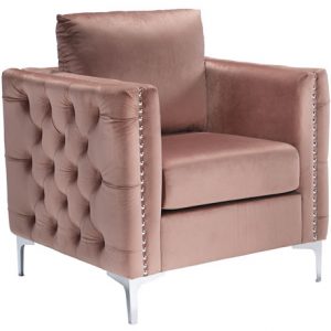 Attention divas…we’ve reserved you a seat! An indulgent choice for highly contemporary spaces, the painstakingly crafted Lizmont chair in blush pink lures with its sleek lines, deep tufting, silvertone sheen and velvety soft feel. If nothing but high glam will do, this sensationally styled accent chair is for you.