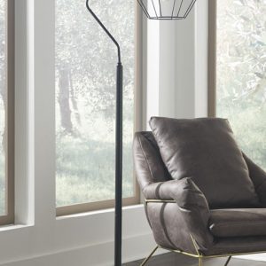 Dare to bare with this illuminating floor lamp. Modern industrial style in a whole new light, this fabulous floor lamp simply wows with a sleek, sculptural base and open cage metal shade, suspended for added drama.