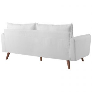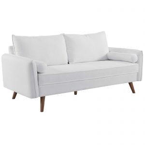Give new vitality to your home or apartment living space with Revive Fabric Sofa in White. With a comfortable yet tailored profile and two bolster pillows, Revive Fabric Sofa in White beckons guests to sit and stay a while. Its soft fabric upholstery grants this sofa an approachable appeal that’s echoed by its calming color, clean lines, and splayed wood legs.