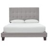 Accelerate your bedroom decor with the Tarah Headboard. Made with a solid wood frame upholstered in polyester fabric, Tarah features tapered wood legs, plastic foot glides, stylish headboard, and ten sturdy wood slats with a centered supporting bar and two support legs for enhanced stability. Due to the wooden slat support system, the use of a box spring is unnecessary. Perfect for mid-century modern, minimalist and contemporary bedrooms. Mattress not included.