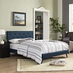 Accelerate your bedroom decor with the Tarah Headboard. Made with a solid wood frame upholstered in polyester fabric, Tarah features tapered wood legs, plastic foot glides, stylish headboard, and ten sturdy wood slats with a centered supporting bar and two support legs for enhanced stability. Due to the wooden slat support system, the use of a box spring is unnecessary. Perfect for mid-century modern, minimalist and contemporary bedrooms. Mattress not included.